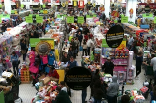 A cadeia de supermercados Pingo Doce fez uma promoção no primeiro de Maio. Todas as compras efectuadas superiores a 100 euros tinham um desconto de 50 por cento. A afluência foi tão grande que mal havia espaço para as pessoas se mexerem.
